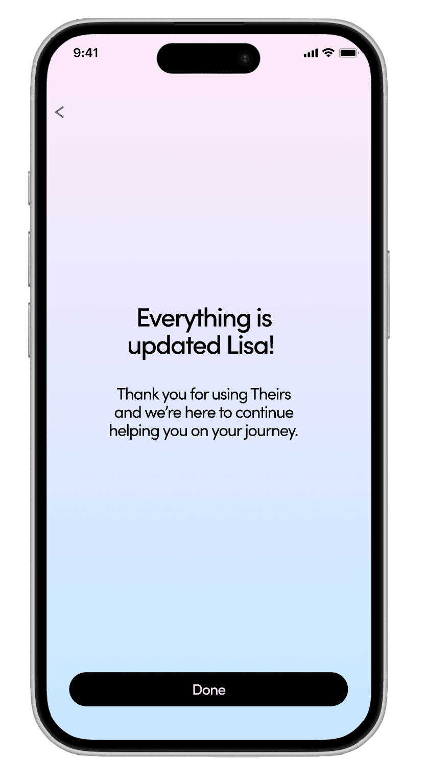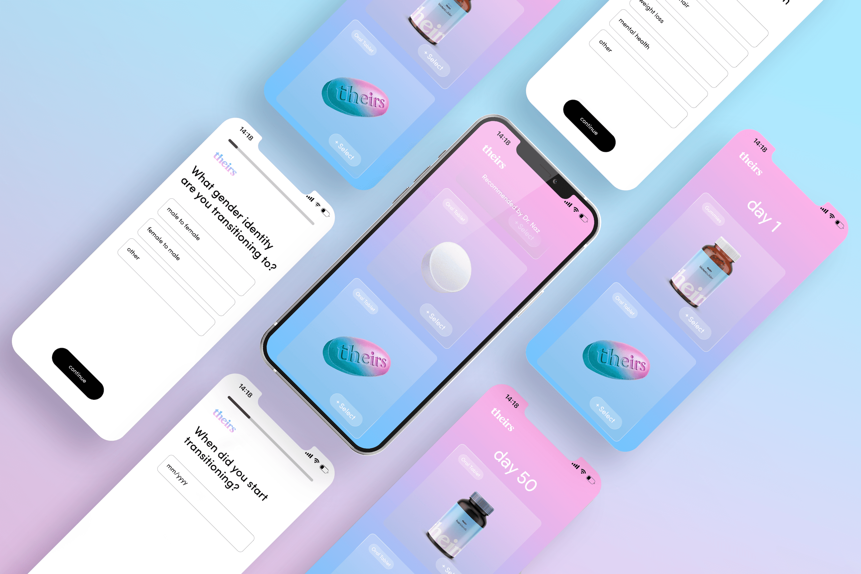 To start a subscription, users complete a quick, easy questionnaire about their transition stage and health goals. Based on their responses, Theirs recommends supplements, prescription medications, and care products that adapt as their needs change.